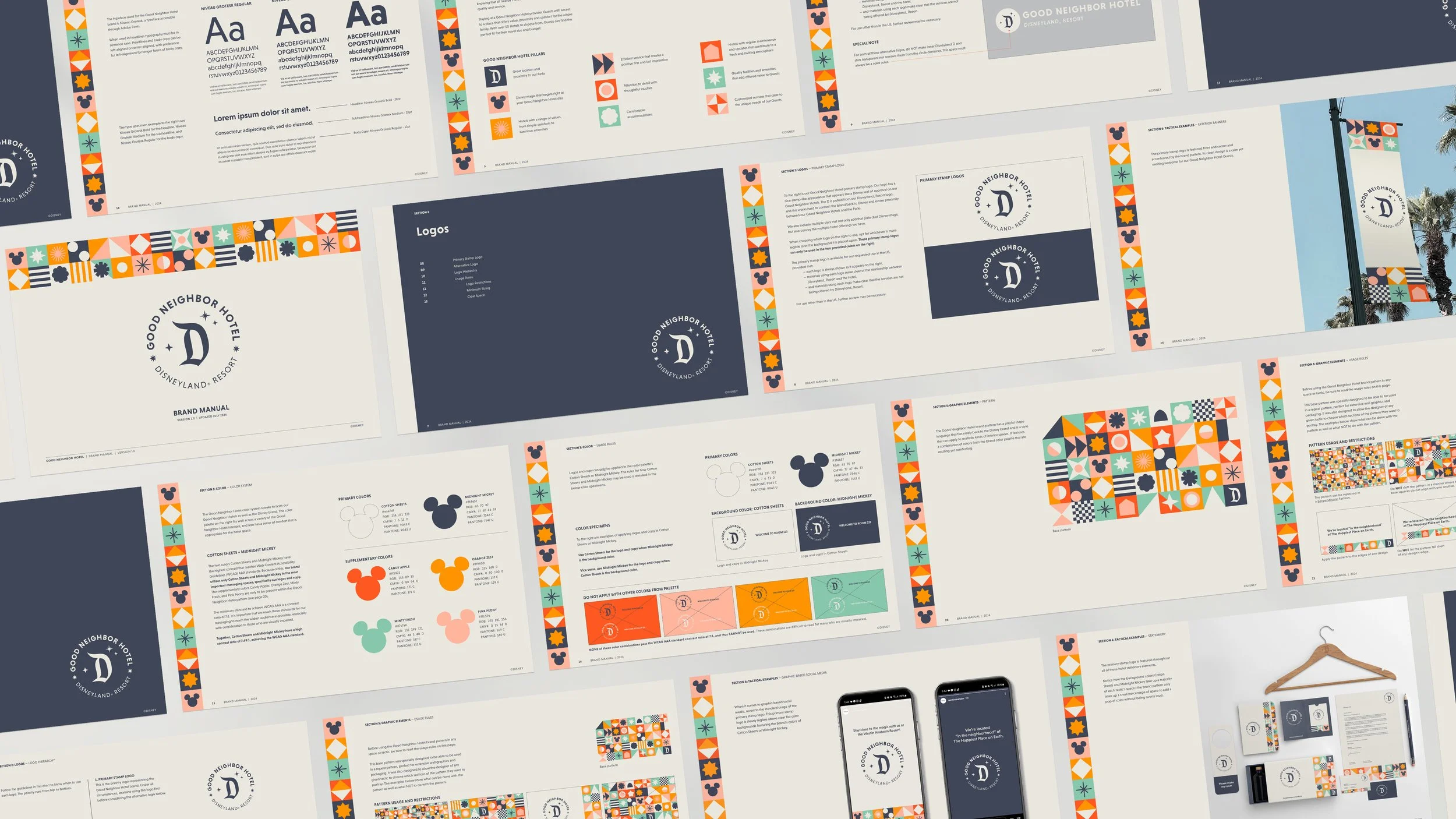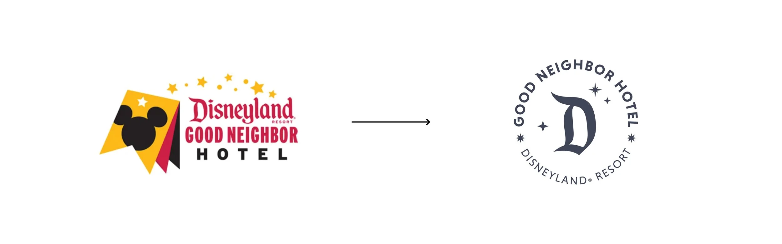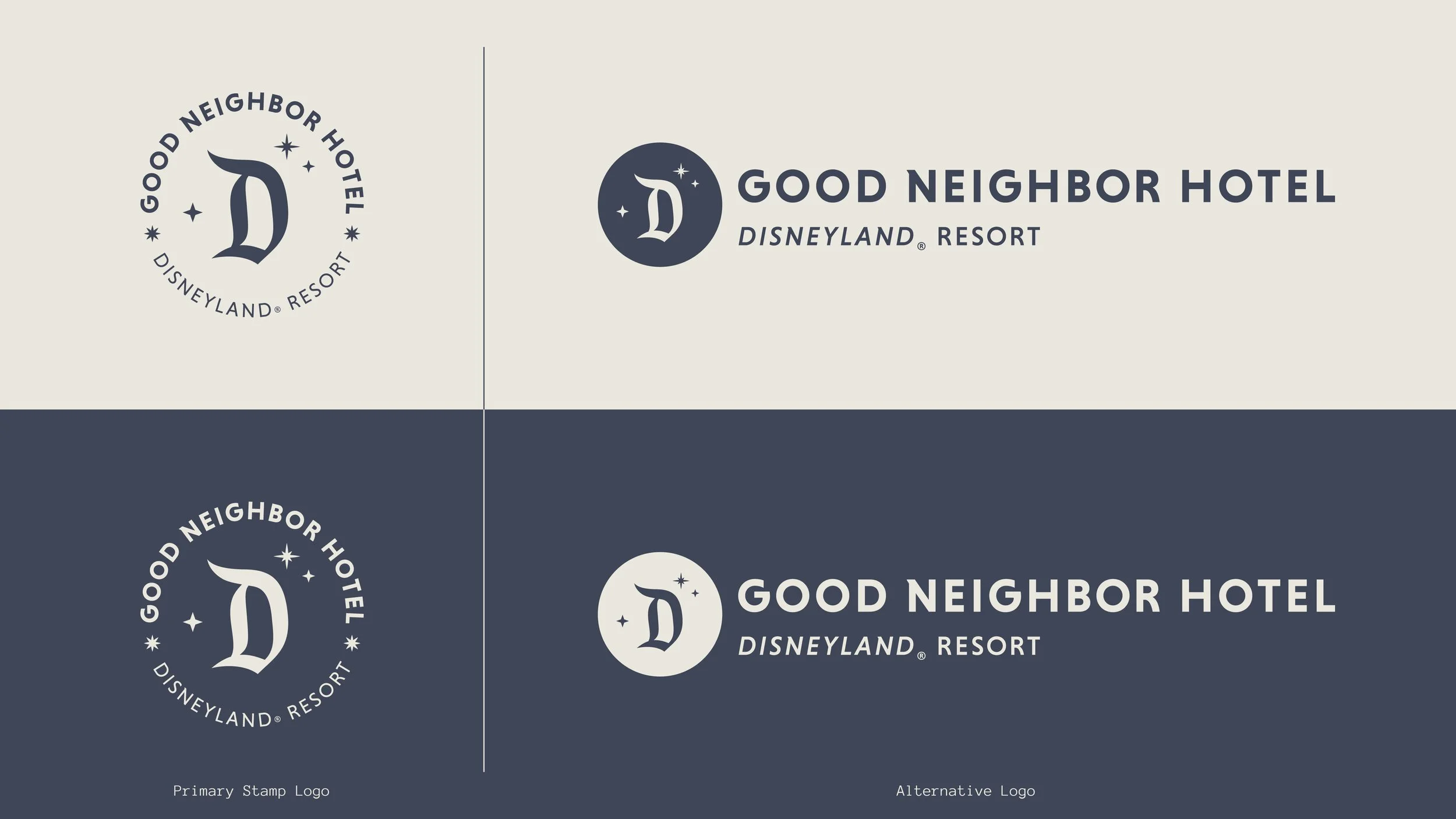 The new logo has a nice stamp-like appearance that appears like a Disney stamp of approval on our Good Neighbor Hotels. The D is pulled from our Disneyland logo, and this works hard to connect the brand back to Disney and evoke proximity between our Good Neighbor Hotels and the Parks. I also included multiple stars that not only add that pixie dust Disney magic but also convey the multiple hotel offerings available.