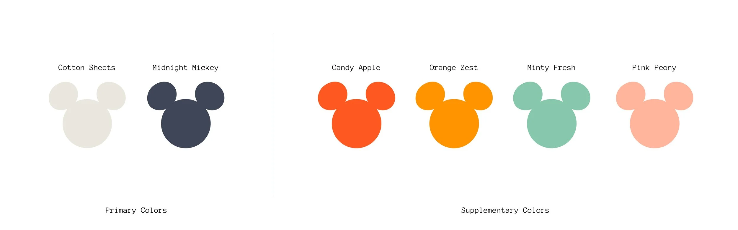 The brand color palette is muted with small pops of color, bringing in light fun that doesn’t veer too eccentric, appropriate for a hotel environment that guests should return to with a sense of comfort after a long day in the Parks.